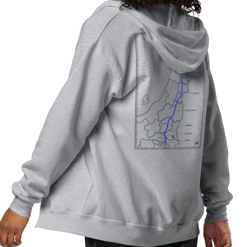 ユニセックス 裏起毛ヘビーウェイトジップパーカー "ROUTE4" [グレー] 12.4oz